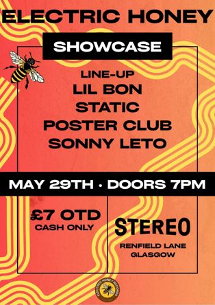 Join us on Wednesday 29th May at Stereo, Renfield Lane for an unforgettable night featuring the freshest talent from Glasgow Kelvin College’s very own student-run label, Electric Honey Records.