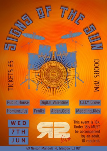 Our fabulous NC & HN 1&2 Music Performance students have organised an end of year performance Showcase – Signs of the Sun - on 7th June 2023, to be held at Room 2 (69 Nelson Mandela Pl, Glasgow G2 1QY)